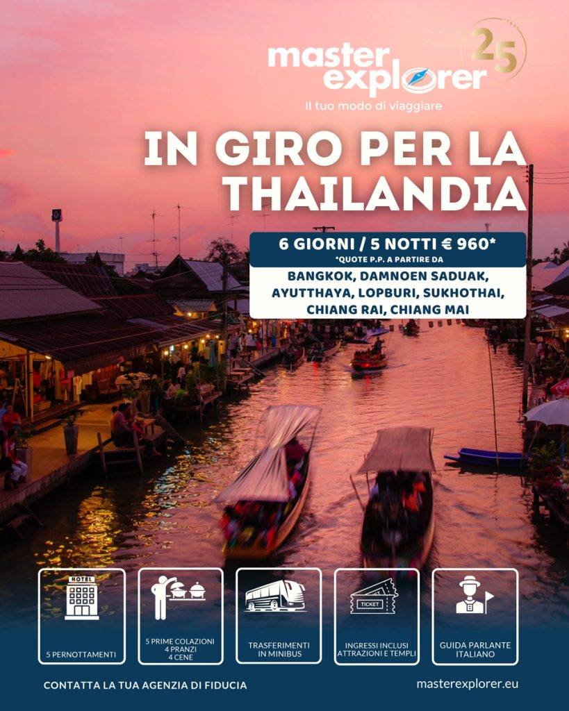 A seguire, tempo libero a disposizione in autonomia, tra le vivaci strade del centro, animate dalle tipiche bancarelle del mercato locale, ideali per sbizzarrirsi in acquisti di souvenir, gustare dello street food o rilassarsi con un massaggio tipico thailandese.