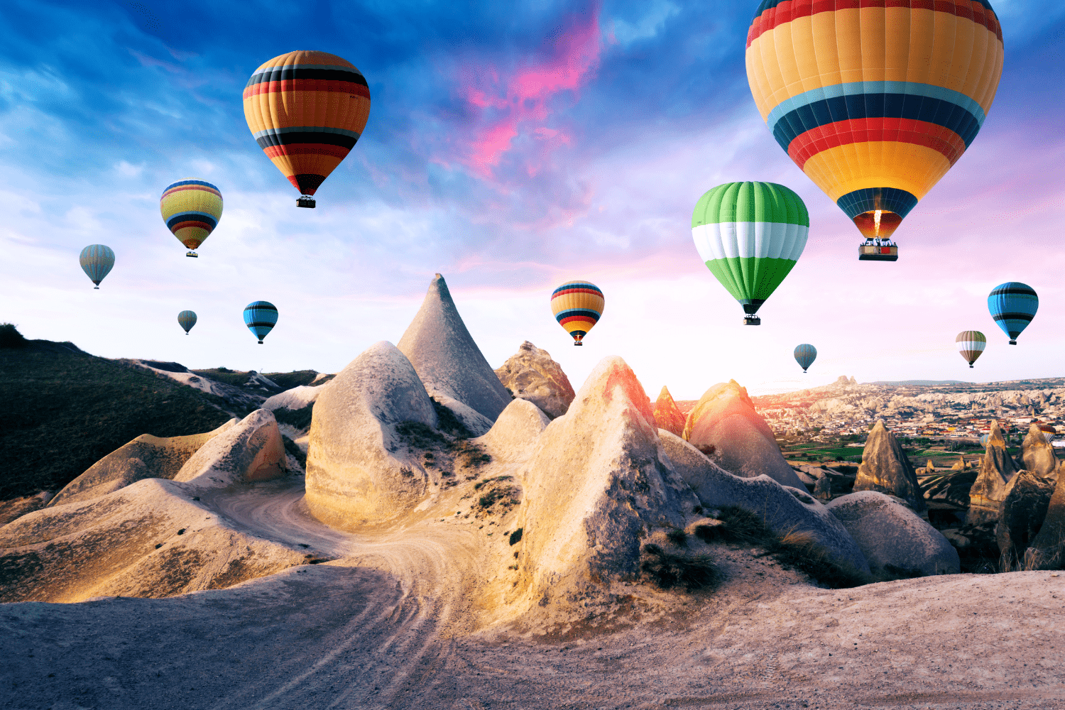 - 4° giorno – Cappadocia: Possibilità di partecipare a una gita in mongolfiera per ammirare dall’alto il paesaggio unico della Cappadocia, illuminato dall’alba (facoltativa, a pagamento e soggetta a disponibilità. Potrebbe essere annullata per condizioni meteo avverse). Prima colazione in albergo. Visita alla Valle di Devrent, dove la roccia erosa ha creato picchi e obelischi, e al Museo all’aperto di Goreme, famoso per le colonne rocciose chiamate “camini delle fate” per il loro aspetto fiabesco. Sosta in una cooperativa dei tappeti per scoprirne la lavorazione. Pranzo in ristorante. Visita esterna alla Cittadella di Uchisar situata all’interno di un cono di roccia tufacea. Proseguimento con la visita alla Valle di Guvercinlik, detta pure la Valle dei Piccioni; alla Valle dell’Amore, qui proprio nel mezzo di un vigneto, si osservano notevoli costruzioni a forma di fungo realizzate nella roccia e Valle Rosa, uno dei luoghi più belli della Cappadocia dove ci sono centinaia di formazioni rocciose di colore rosa. Sosta in un laboratorio di lavorazione di pietre preziose, oro e argento. Rientro in albergo. Cena in albergo e pernottamento. Possibilità di partecipare a una serata folkloristica con danzatrice del ventre (facoltativa, a pagamento).